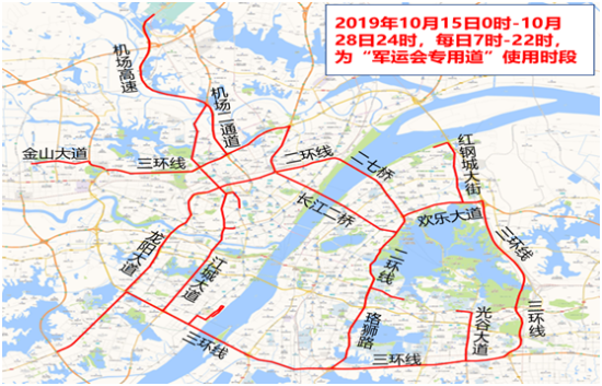“軍運(yùn)會(huì)”交通管理措施自2019年10月15日0時(shí)起實(shí)施,至2019年10月28日24時(shí)止。
