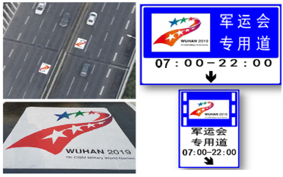 “軍運(yùn)會(huì)專用道”與“公交專用道”共車道時(shí),公交車輛可以通行。