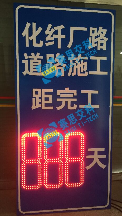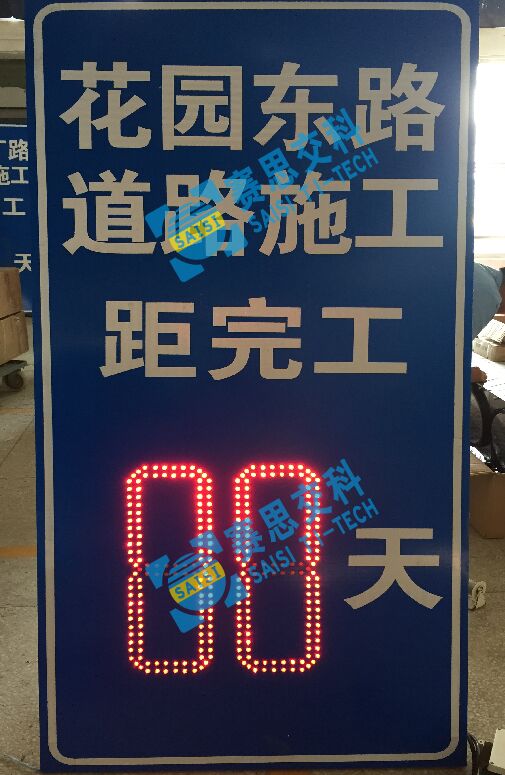 1、工藝說(shuō)明:在標(biāo)志版面中嵌入“8”字型LED發(fā)光條碼,可根據(jù)需要設(shè)置組數(shù)(個(gè)位、十位、百位),自動(dòng)校正時(shí)間節(jié)點(diǎn),動(dòng)態(tài)發(fā)光顯示剩余天數(shù),有效告知施工區(qū)作業(yè)時(shí)間。