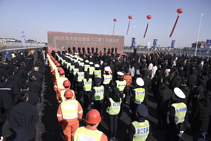 今天上午,灣北二期開通儀式在汾湖主線站區(qū)域舉行,長三角生態(tài)綠色一體化發(fā)展示范區(qū)執(zhí)委會、江蘇省交通運輸廳、蘇州市人民政府、浙江省交通運輸廳、浙江省高速交警總隊、上海市交通委綜合交通處等相關領導,市委書記張兵,市委副書記、市長毛宏芳,市人大常委會主任劉冬生,市政協(xié)主席高玲慧等出席活動。張兵宣布杭州灣大橋北接線二期正式開通!