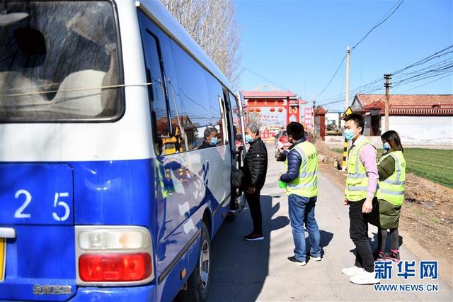 2月22日,復(fù)工直通車在山東濟南歷城區(qū)李官莊村接載返崗復(fù)工村民。 新華社記者 朱崢 攝