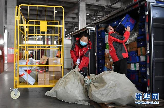 在陜西西安,京東物流西北區(qū)西安傳站車隊貨車司機梁紅娟(左)與同事一起準(zhǔn)備將貨物裝車(3月6日攝)。 新華社記者 劉瀟 攝
