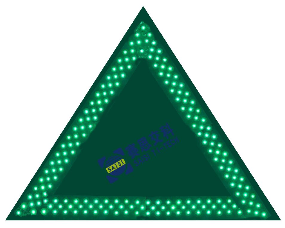 技術(shù)參數(shù):三角2400mm;綠底、無圖案、綠色LED管;LED點陣式主動發(fā)光標志;太陽能供電或外接市電。