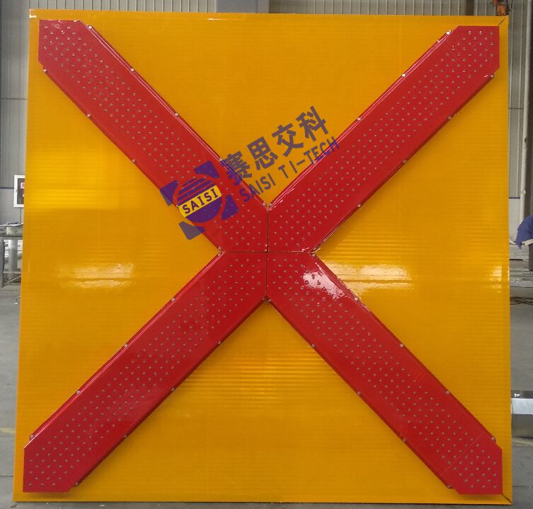 技術(shù)參數(shù):尺寸2000mm*2000mm;黃底、紅圖案、紅色LED管;LED點陣式主動發(fā)光標志;太陽能供電或外接市電。