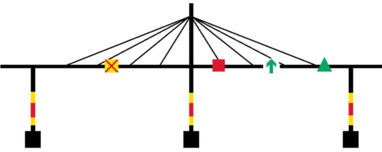 船舶在內(nèi)河或海域中通行,在臨近跨河、跨海橋梁時,需要通過觀察橋梁上的助航標志,來判斷橋梁下方的通行航道定位,及時修正航行線路,所以設(shè)置于橋梁上的助航標志,對船舶準確、及時地把握前方橋梁信息顯得尤其重要。橋梁航道助航標志通常采用逆反射材料,船舶臨近時需要依賴射燈照射才能認知版面信息,在橋梁周圍光照環(huán)境不佳的夜晚或惡劣天氣,普通的反射型標志已不能滿足全天候的視認需求,現(xiàn)在普遍采用主動發(fā)光標志工藝,該標志不僅具備主動發(fā)光功能(不需射燈照射),同時兼具逆反射效果,被越來越多地應(yīng)在橋梁航道助航上,極大地增強了助航標志的遠距離視認性、警示性、易捕捉性,大大提升了橋梁航道的安全性。