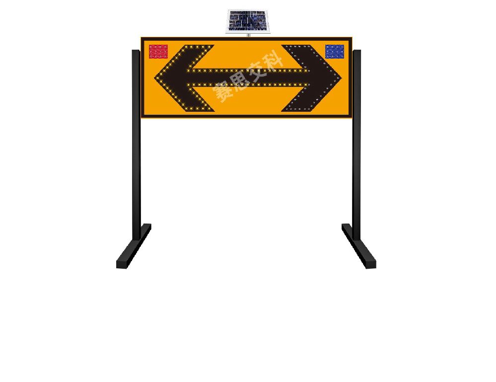 1、工藝描述:采用鋁板材質(zhì),左右各嵌入紅藍(lán)簡(jiǎn)易爆閃燈,設(shè)置雙向箭頭標(biāo)識(shí),嵌入LED高亮發(fā)光管,采用太陽能供電方式,實(shí)現(xiàn)主動(dòng)發(fā)光功能。