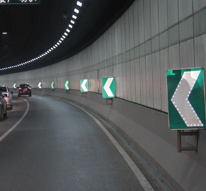 因此,在有條件的情況下,隧道及進出路段所有交通標志均宜采用Ⅴ類大廣角反光膜,或者采用主動發(fā)光型交通標志,以提升交通標志的遠距離、大角度、全天候視認功能,并通過科學、合理地增設基礎交通安全設施,消除特殊交通環(huán)境所衍生的安全隱患,提高隧道內行車安全、秩序和通行效率,降低交通事故發(fā)生率,保證整個運輸系統(tǒng)的健康運行。