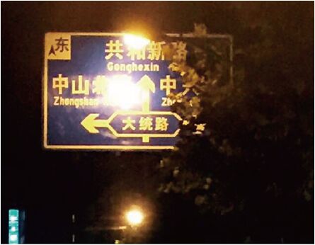 在逆光環(huán)境中,普通逆反射標(biāo)志幾乎無法辨認(rèn),而主動發(fā)光標(biāo)志卻仍然具有很強(qiáng)的視認(rèn)效果。在我國東西方向的交通道路中,逆光對標(biāo)志牌的視覺影響特別嚴(yán)重。