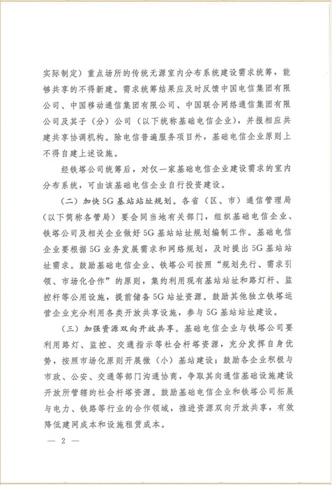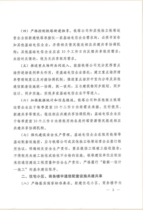 近日,《工業(yè)和信息化部》與《國(guó)務(wù)院國(guó)有資產(chǎn)監(jiān)督管理委員會(huì)》聯(lián)合發(fā)文《關(guān)于2019年推進(jìn)電信基礎(chǔ)設(shè)施共建共享的實(shí)施意見》(工信部聯(lián)通函(2019)123號(hào)),文件針對(duì):全省、自治州、直轄市通信管理局、中國(guó)電信集團(tuán)有限公司、中國(guó)移動(dòng)通信集團(tuán)有限公司、中國(guó)聯(lián)合網(wǎng)絡(luò)通信集團(tuán)有限公司、國(guó)家電網(wǎng)有限公司、中國(guó)南方電網(wǎng)有限責(zé)任公司、中國(guó)廣播網(wǎng)絡(luò)有限公司、中國(guó)鐵塔股份有限公司等涉及通訊業(yè)務(wù)的公司,文件提出:2019年,電信基礎(chǔ)設(shè)施共建共享工作將以持續(xù)提升資源共建共享水平、有力支撐行業(yè)高質(zhì)量發(fā)展為目標(biāo),強(qiáng)化統(tǒng)籌集約建設(shè)和存量資源共享,積極拓展跨行業(yè)共建共享范圍,保障通信基礎(chǔ)設(shè)施建設(shè)通行權(quán)和公平進(jìn)入,促進(jìn)行業(yè)減低增效。